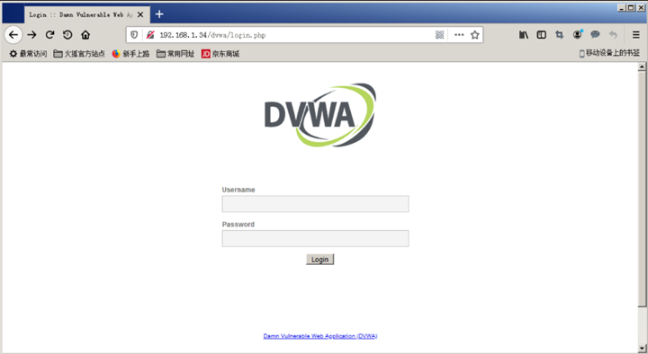 2.在攻击机上,启动Firefox浏览器,登录靶机上的DVWA网站。
