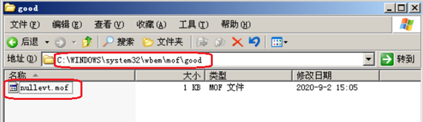 (1)进入靶机的C:/Windows/System32/wbem/mof/good目录,会发现其下存在nullevt.mof文件。