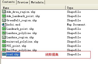 1、先打开ArcCatalog,连接到目标文件夹,假定该文件下有一个名为road的道路图层。