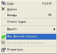 2、在road图层上右键新建一个网络数据集,并按照其默认设置直至完成。