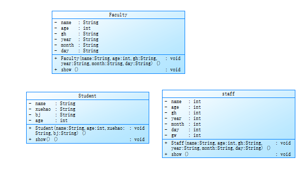 (1)题目分析:第一题比较简单,只要定义三个类然后show一下就行