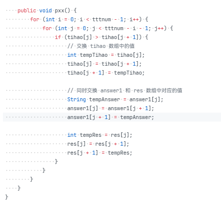 (1)、答题判题程序:在每一个类之前增加一个注释说明,将其内部涉及到的变量和方法都标记出来,方便后续处理。遵循设计原则:单一职责原则:确保每个类和函数只负责一项明确的功能。例如,将处理不同类型题目(单选题、多选题、填空题)的逻辑分别封装在独立的函数或类中,避免在一个函数里处理多种类型题目导致代码复杂度过高且难以维护。开闭原则:对修改关闭,对扩展开放。目前代码在迭代过程中因新题型的加入而需要大量修改原有代码,应重构代码结构。比如,可以定义一个抽象的题目处理接口,不同类型的题目(如单选题处理类、多选题处理类、填空题处理类)实现该接口,这样当有新题型加入时,只需新增一个实现该接口的类,而无需修改已有的核心逻辑代码。解耦模块依赖减少不同模块之间的直接耦合。当前代码中可能存在多个模块直接相互引用或操作对方的数据结构,应通过定义清晰的接口和数据传递机制来解耦。例如,答题模块与判题模块之间,通过定义统一的答题数据格式和判题结果反馈格式,使它们之间仅通过这些接口进行交互,而不直接访问对方内部的数据或函数。