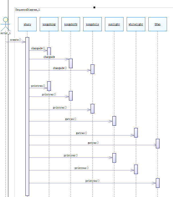 然后我定义了一个kongzhi类用来处理和控制有关的元器件的类,以这个kongzhi类作为父类的有三个类,这三个子类分别是kongzhikg(控制开关),kongzhifd(分档控制器),kongzhilx(连续控制器),这三个子类中有共同的方法,一个是changedw,getres,printres,changedw是用来改变该控制原件的状态的,getres是用来获取经过该元器件后的电压大小,然后printres是用来打印控制原件本身的状态的。