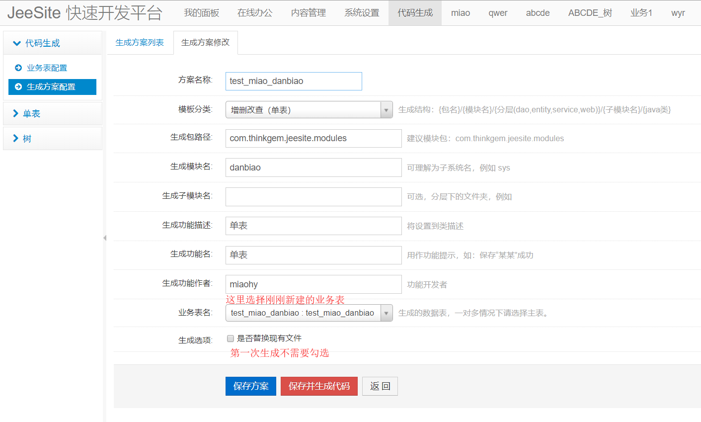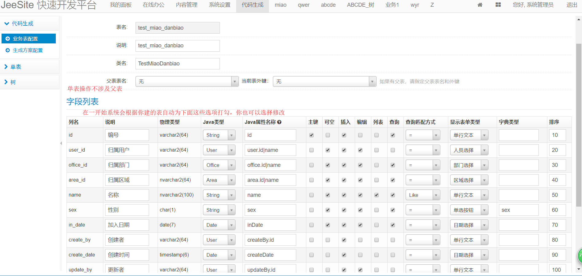 - 字段生成方案:表单中字段生成的样式,如:input,select,treeselect,areatext等等