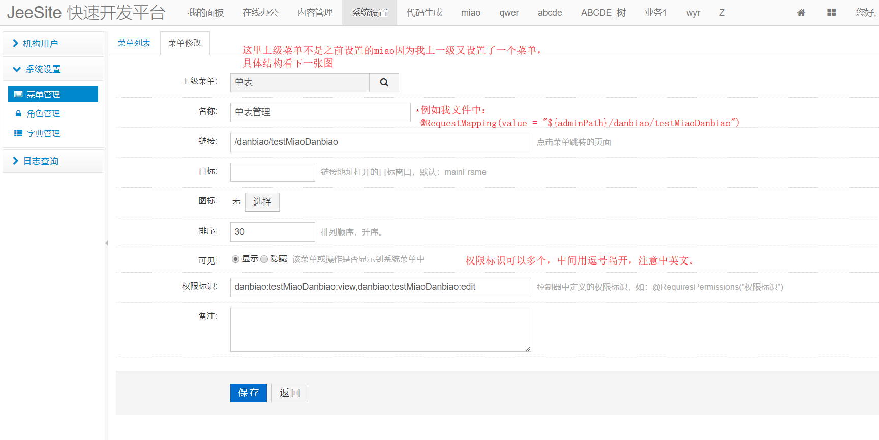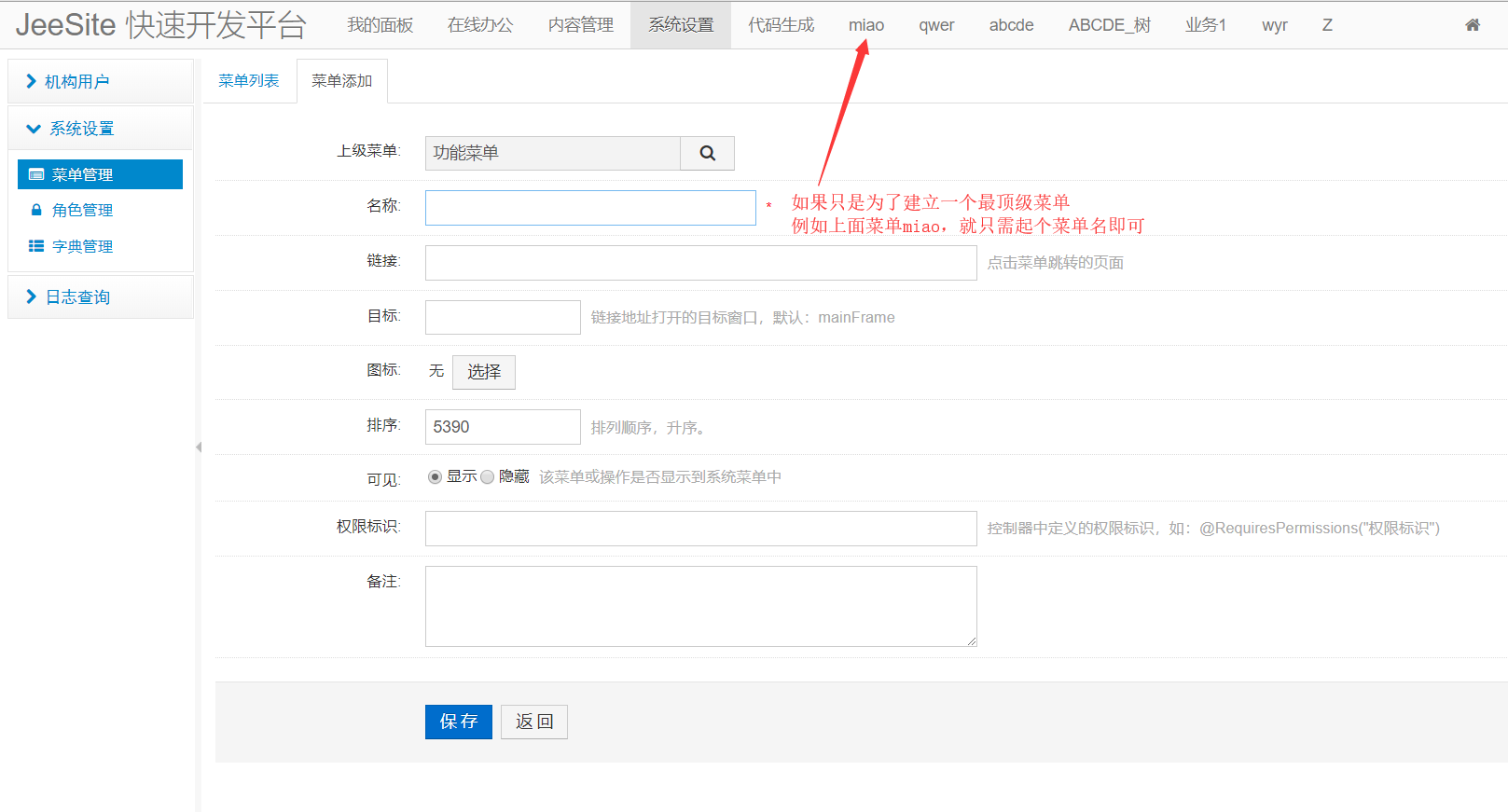 1、先配置一个顶级菜单,然后再配置下一级菜单