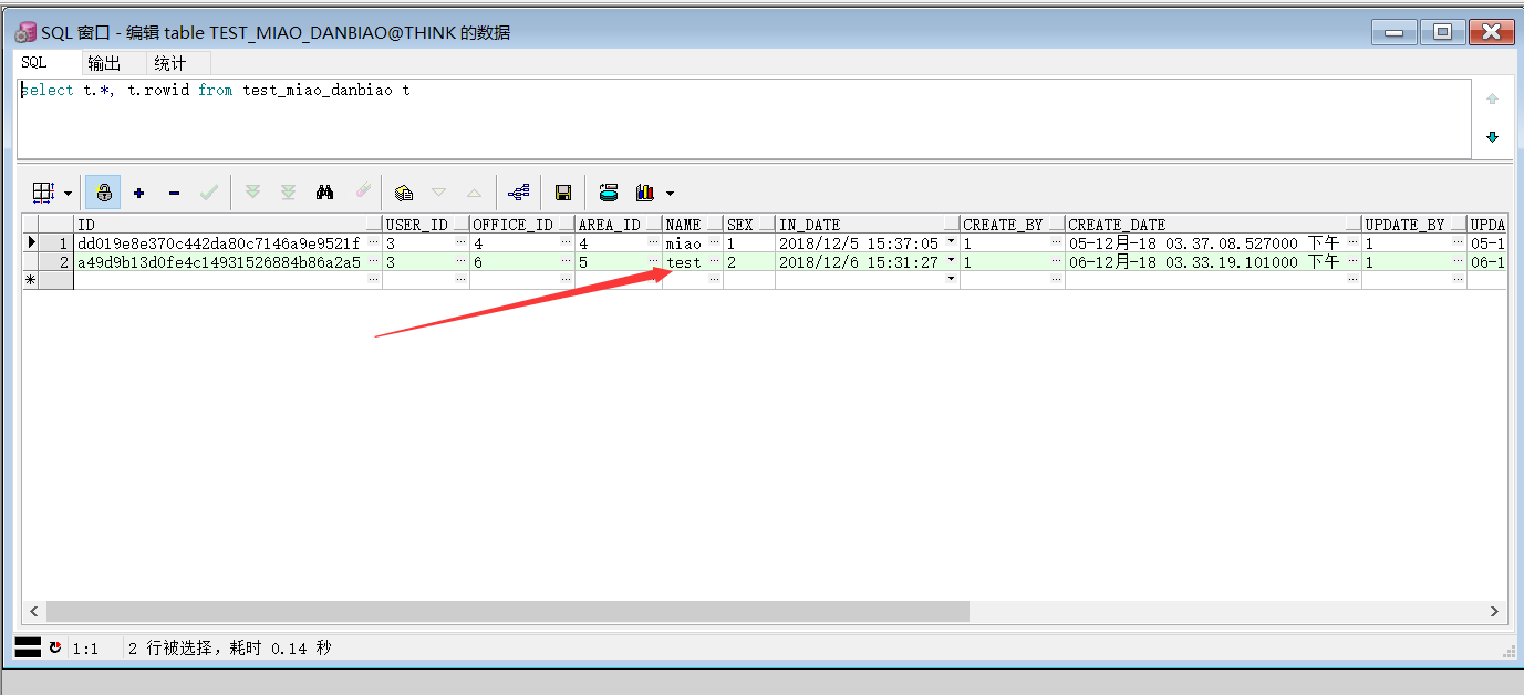 可以看到数据库中已经有我们刚刚添加的test这条记录了