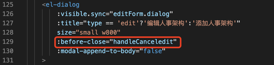 里面的handleCanceledit是自定义的方法,这个方法名要和弹窗的取消按钮方法名一致,会省去很多麻烦