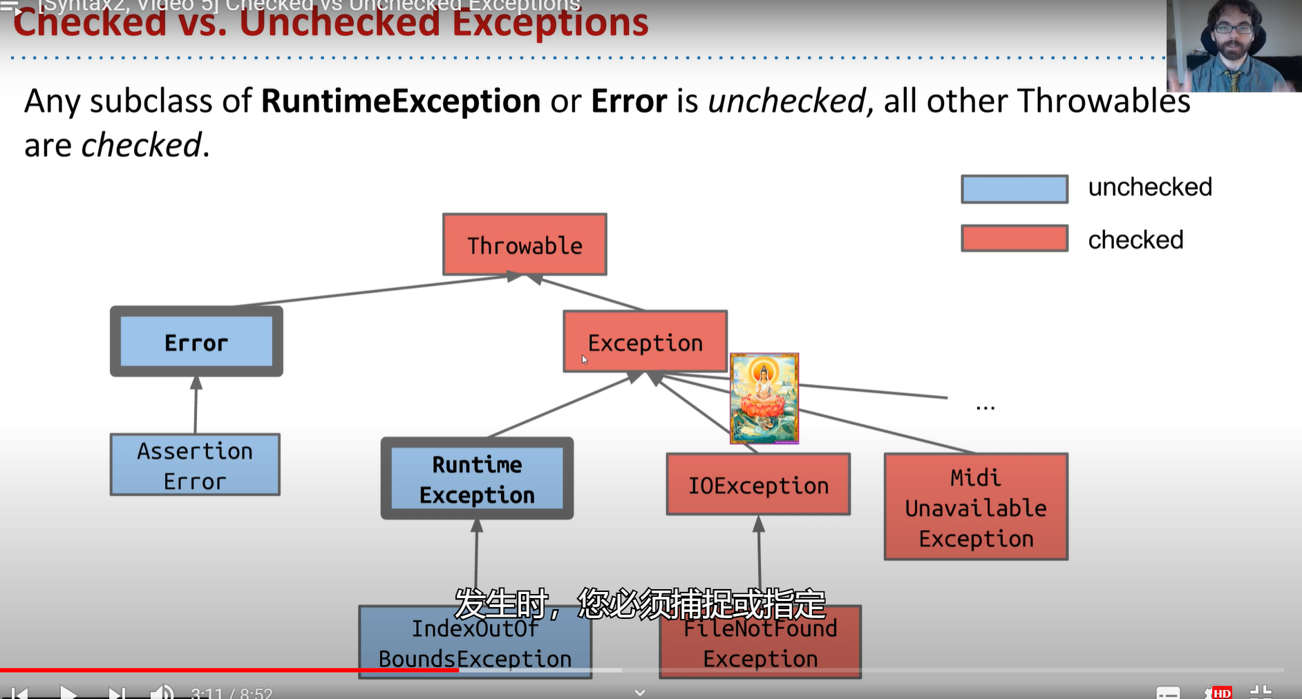 unchecked exception :如果没有try catch 可以编译通过,若为checked exception则无法编译通过