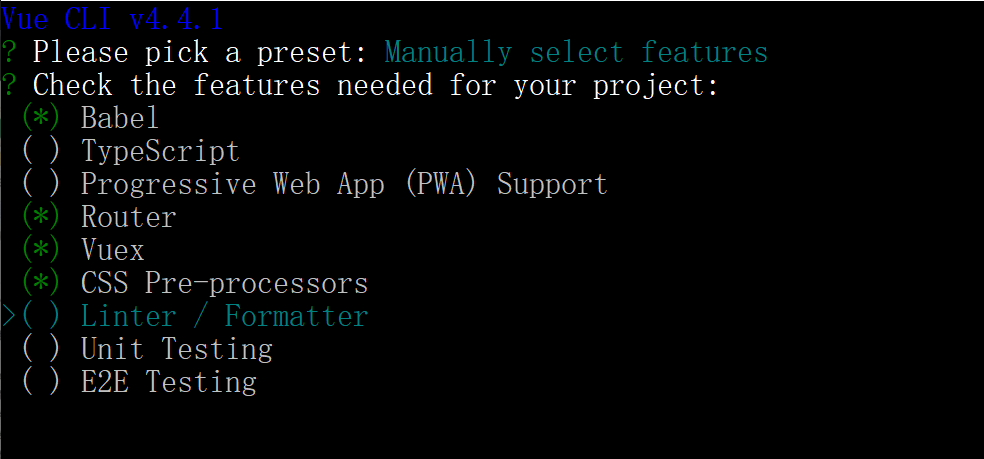 进入如下界面:可以默认自动创建,可以手动选择特性(示例中使用手动)
