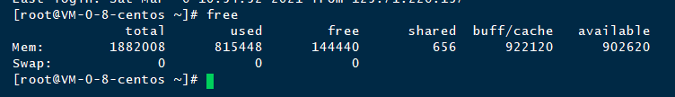 这个界面包含了物理内存Mem和交换分区Swap的使用情况,其中包括以用内存、缓存、可用内存等。其中缓存是buffer和cache这两部分的总和。