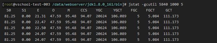 interval [s|ms] #以指定单位的采样间隔,秒(s)或毫秒(ms)。默认单位是毫秒。必须是正整数。指定时,jstat命令会在每个时间间隔产生输出。
