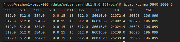jstat -gcnew -h3 836 250 #显示pid 836的250毫秒为时间间隔,每三行输出标题的统计新生代的行为