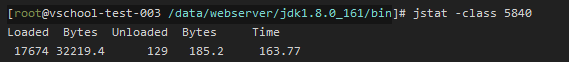 jstat -class 3313 #输出pid 3313进程的监视类装载、卸载数量、总空间以及耗费的时间