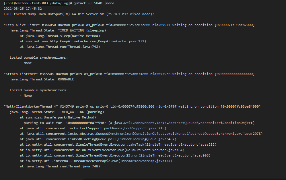 jstack -l 5840|more