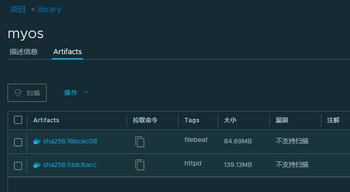 [root@master bb]# docker tag myos:filebeat 192.168.1.100:80/library/myos:filebeat