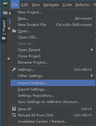 第二步:找到pycharm-->file-->Import Setting,如下图