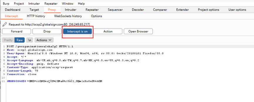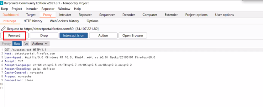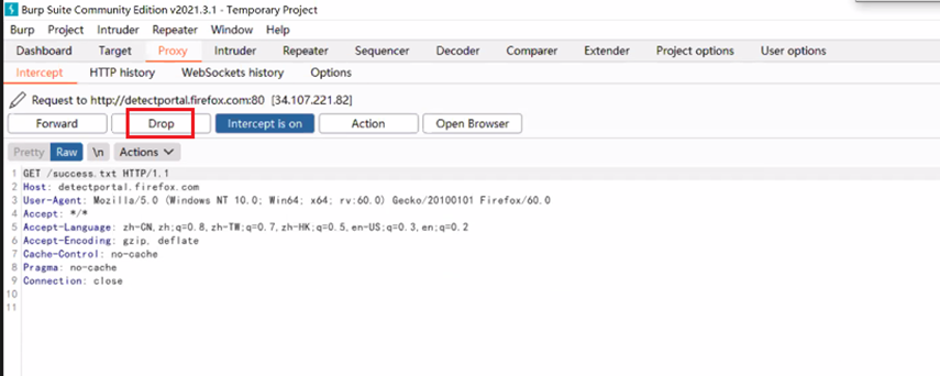 3、 Intercept is off:表示关闭拦截功能