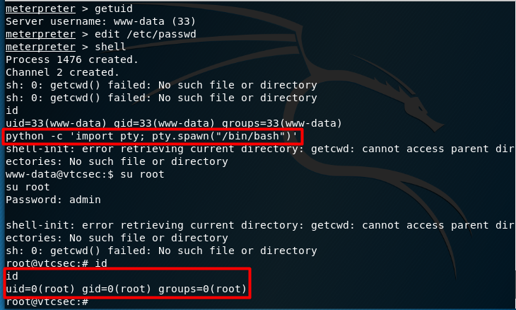 meterpreter > edit /etc/passwd meterpreter 下的edit 类似vim ,并且我们可以编辑/etc/psswd