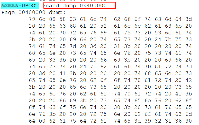 1.2观察上述打印,我们可以知道uboot env分区是在nand flash 0x400000处