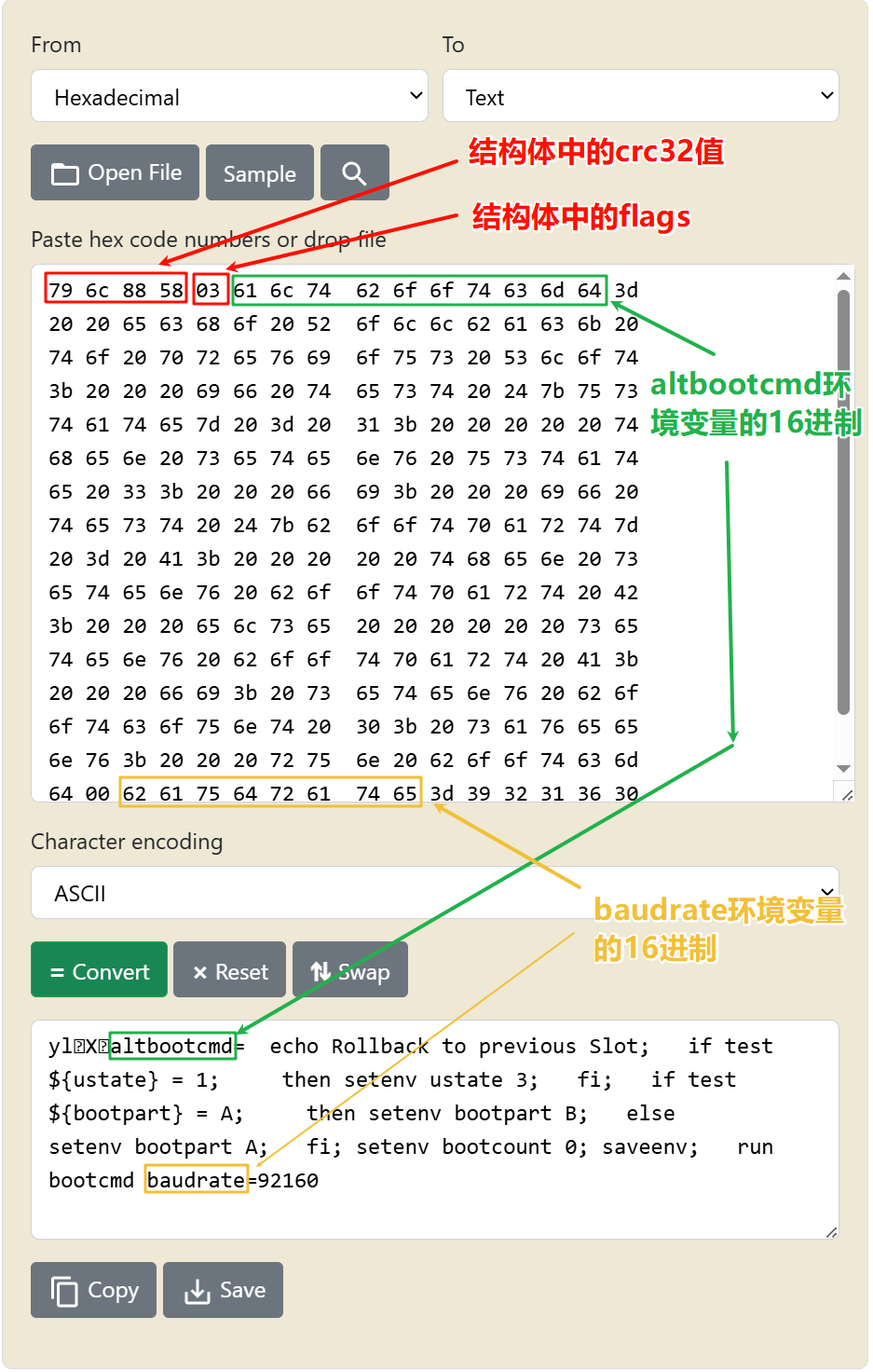 env在uboot中的结构体如下,下面根据结构体来解析dump出来的内容