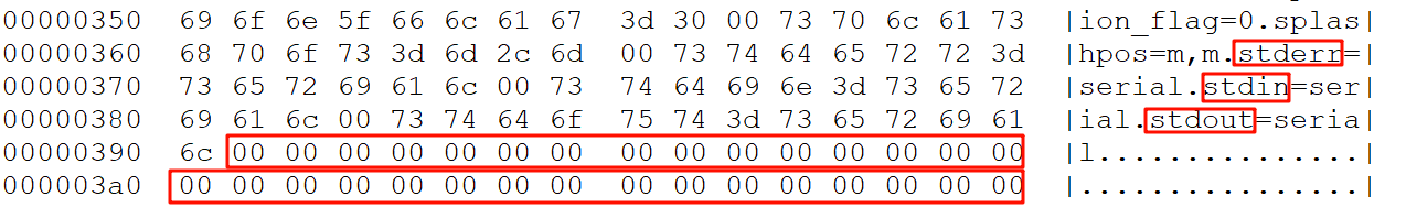 在最后一个stdout环境变量之后我们开始用0x00来填充。