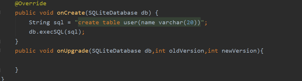 上面的代码有两个问题,问题1.为什么onUpgrade()方法是空的?答案:因为它是抽象方法,必须被继承,但我为了达到极简的目的又没有用到它,一方面必须重写,一方面没有用到,所以就是一个空方法在这摆着样子了。问题2.为什么只重写这两个方法,其他的方法呢?