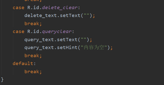 ②删:删除数据,这里不需要生成ContentValues对象,直接从表user中delete符合要求的内容即可,代码如下: