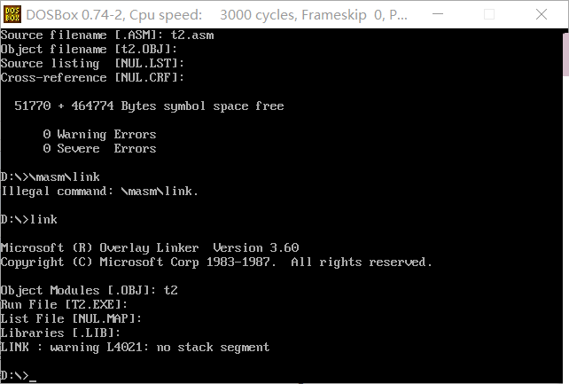 接着分别对程序进行汇编,链接,运行,调试,截图如下