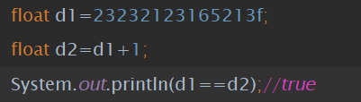 图2. 虽然float d2=d1+1,但在输出的结果上看是true。