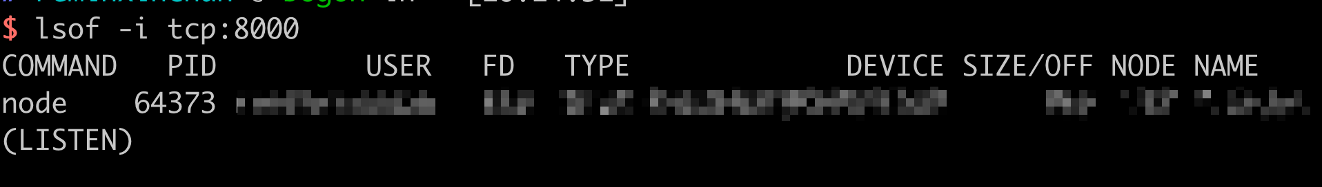 查看端口占用(lsof -i tcp:port,端口8000为例):