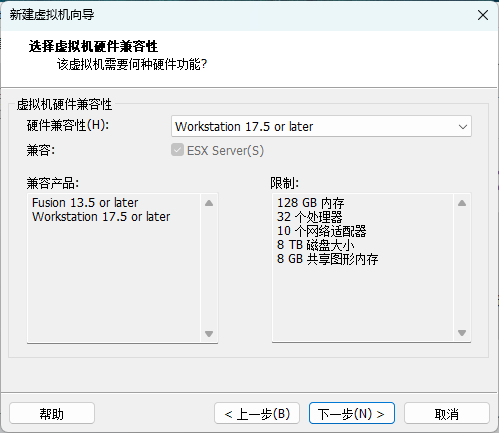 新建虚拟机向导提示硬件的兼容性,点击下一步。