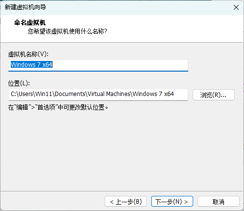 命名虚拟机,可以随便命名,也可以设置安装到其他位置。