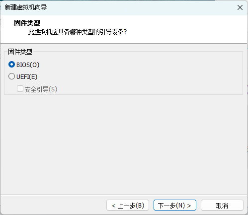 设置引导固件类型,一般是BIOS。默认即可。