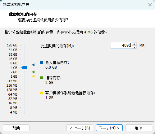 设置虚拟机内存,Win7建议设置4G内存。