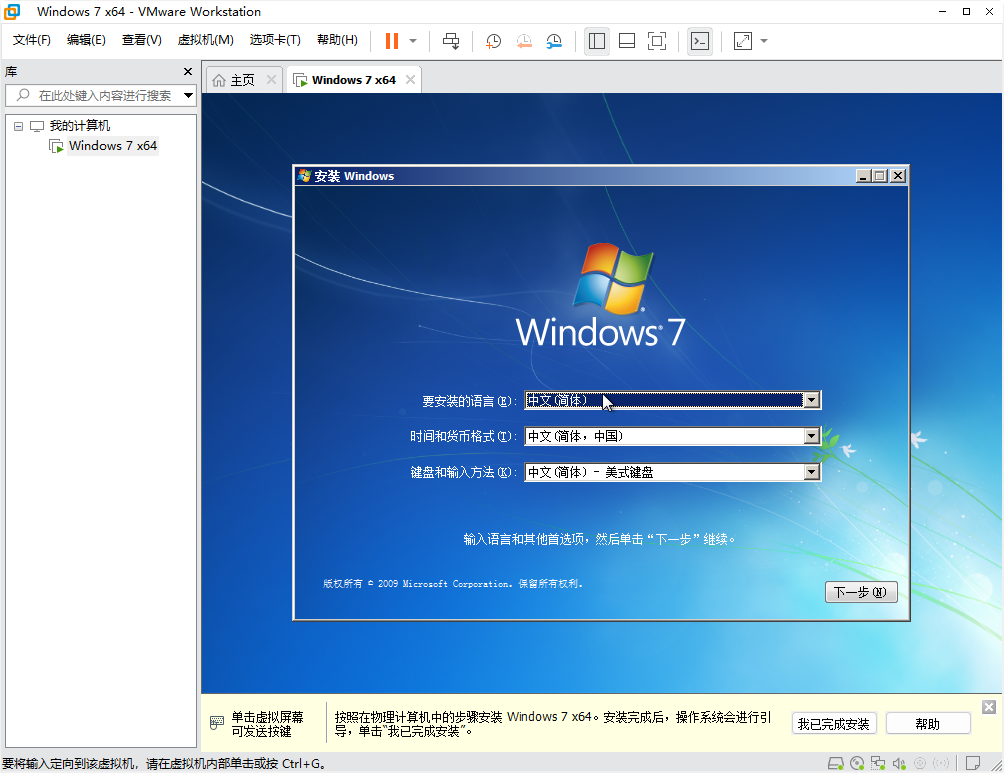 没什么特别的,和在真实机上安装Windows7一样。真实机上装系统需要安装驱动程序,在虚拟机中则需要安装VMware Tools,相当于驱动。