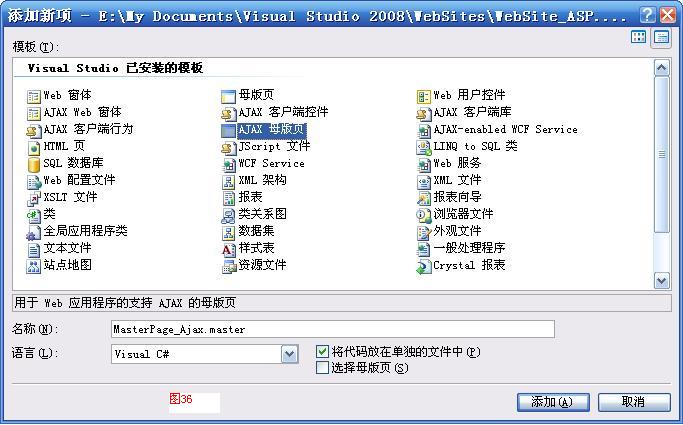 2. OK 了 !!! 用得时候就建立 Web窗体,然后选择我们刚才建的 AJAX 母版页 .