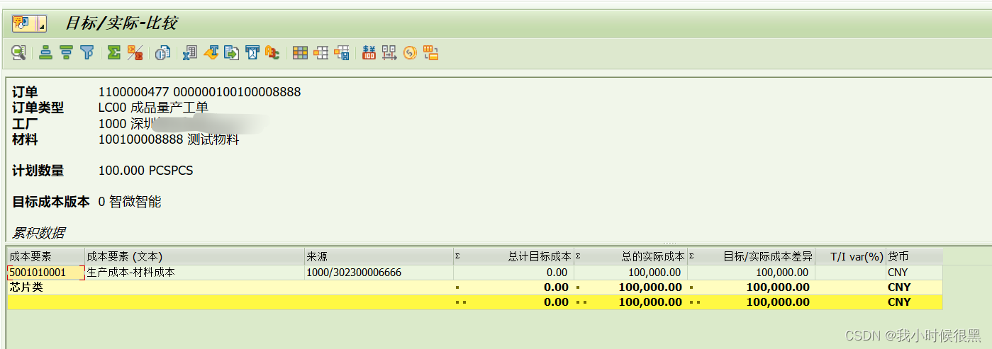 可以看到物料收货后,物料的成本直接进入了生产成本–材料成本,