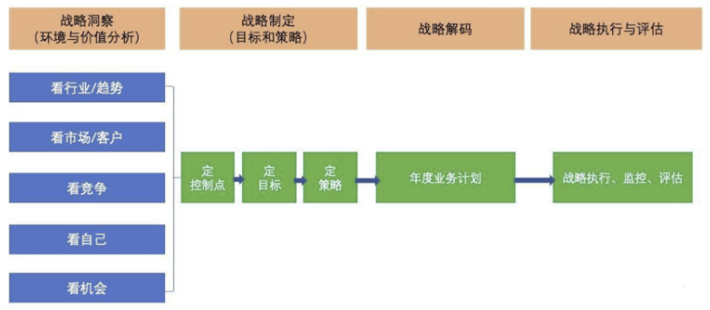 看自己:看自己是掂量掂量自己,很多业务不是你的菜,就要做减法。最后输出的东西是很具象化的战略机会点。