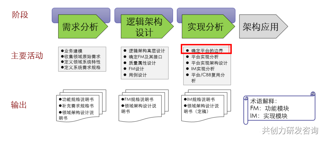 做加法:先确定那些明显可以重用的部分,并在将来某个产品可以从其他产品重用或移植某个部分时,再进行重用性分析,把公共部分作为新的公共部件添加到领域核心资产中。这种策略可以减轻平台的负担和重用风险。