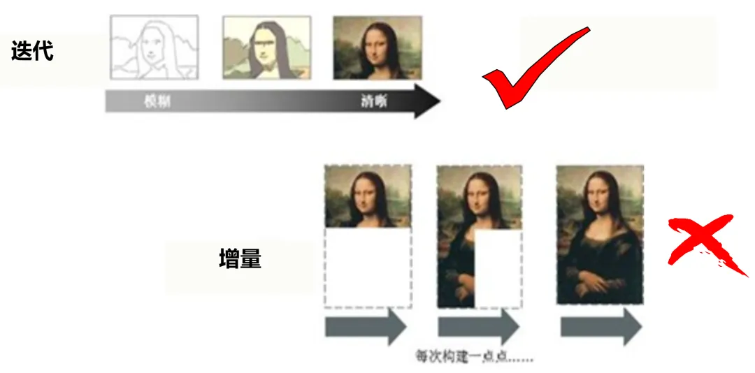 如上图,现在很多的产品的开发不再是用IPD的开发模式,因为周期较长,并且是一次性开发成功,难度很大,因为对于快销品,产品迭代较快的产品型态,比较适合用MVP,即上图的第一种模式。