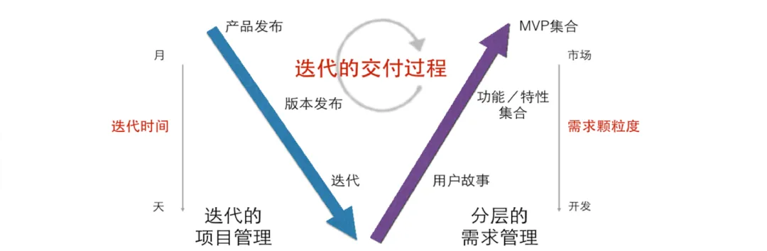 为什么需要MVP,因为检验市场需求的时间有限,需要尽快得到用户反馈,并对产品进行迭代,并输出最终正式的产品。 如下图: