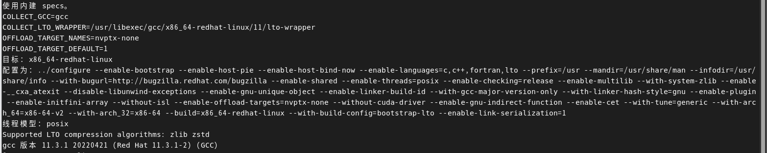 5.再次使用 gcc -v 检测版本,检测到版本号即为安装成功。