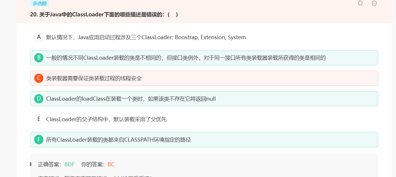 A.Java系统提供3种类加载器:启动类加载器(Bootstrap ClassLoader) 扩展类加载器(Extension ClassLoader) 应用程序类加载器(Application ClassLoader). A正确