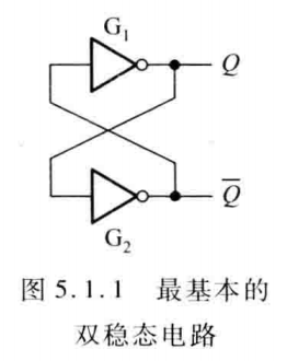 - 首先是双稳态电路,将两个非门G1和G2接成交叉耦合形式,便构成了最基本的双稳态电路。