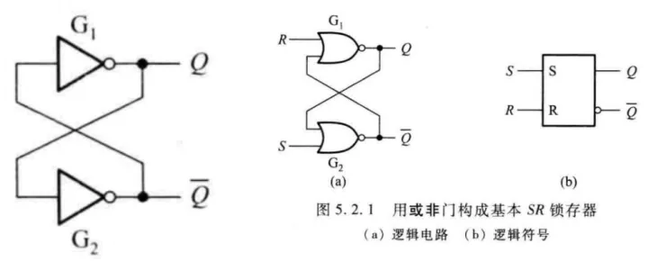 a.当Q为0时,经非门G2反相,Q`=1。Q`反馈到G1输入端,又保证了Q=0。两个非门首尾相接的逻辑锁定使得电路能自行保持在Q=0,Q`=1的状态,形成第一种稳定状态。反之,Q=1,Q`=0则形成第二种稳定状态。电路进入其中任意一种逻辑状态都能长期保持下去,并可通过Q端检查出来,因此它具有存储一位二进制数据的功能。
