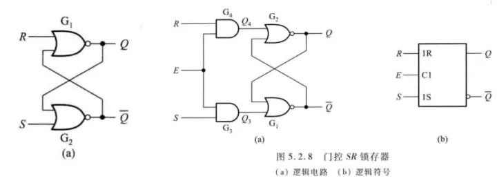 - 将上述的双稳态电路中的非门换成或非门,就构成了基本SR锁存器,它具有简单的控制功能。