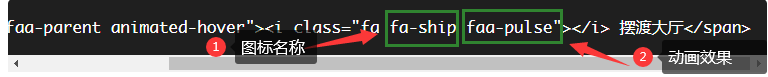 网站里还有相关说明,调整快慢、旋转都有,现在只需要把左边那列的动画名称,填到代码图的对应位置,就能使图标做出相应的动画了。
