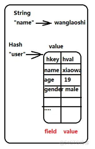 hset key field value:key 是 相当于变量名,filed是value中的key-value对中的key,但是面向对象时表示一个对象的属性名称, value表示属性的值 127.0.0.1:6379> hset user username hanlaoshi (integer) 1 127.0.0.1:6379> hset user age 18 (integer) 1 127.0.0.1:6379> hset user location beijing (integer) 1 127.0.0.1:6379> type user hash 127.0.0.1:6379> hget key field 127.0.0.1:6379> hget user username "hanlaoshi" 127.0.0.1:6379> hexists key field:判断hash类型中的属性值是否存在 127.0.0.1:6379> hexists user haha (integer) 0 127.0.0.1:6379> hexists user age (integer) 1 127.0.0.1:6379> hmset和hmget:批量设置,不支持分布式 127.0.0.1:6379> hmset student age 19 name wangxiaoxiao gender male OK 127.0.0.1:6379> hmget student age name gender 1) "19" 2) "wangxiaoxiao" 3) "male" 127.0.0.1:6379> Hdel key field:删除属性和值 127.0.0.1:6379> hdel student age (integer) 1 127.0.0.1:6379> hget student age (nil) 127.0.0.1:6379>