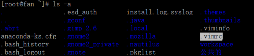 .vimrc文件的位置在~目录,通过 ls -a 命令可以看到,使用vim编辑器打开即可编辑
