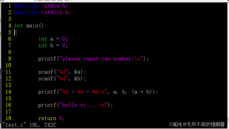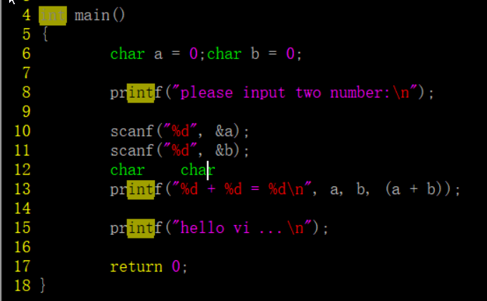 把整个文件每一行第一个char换成int,%s/char/int,回车运行